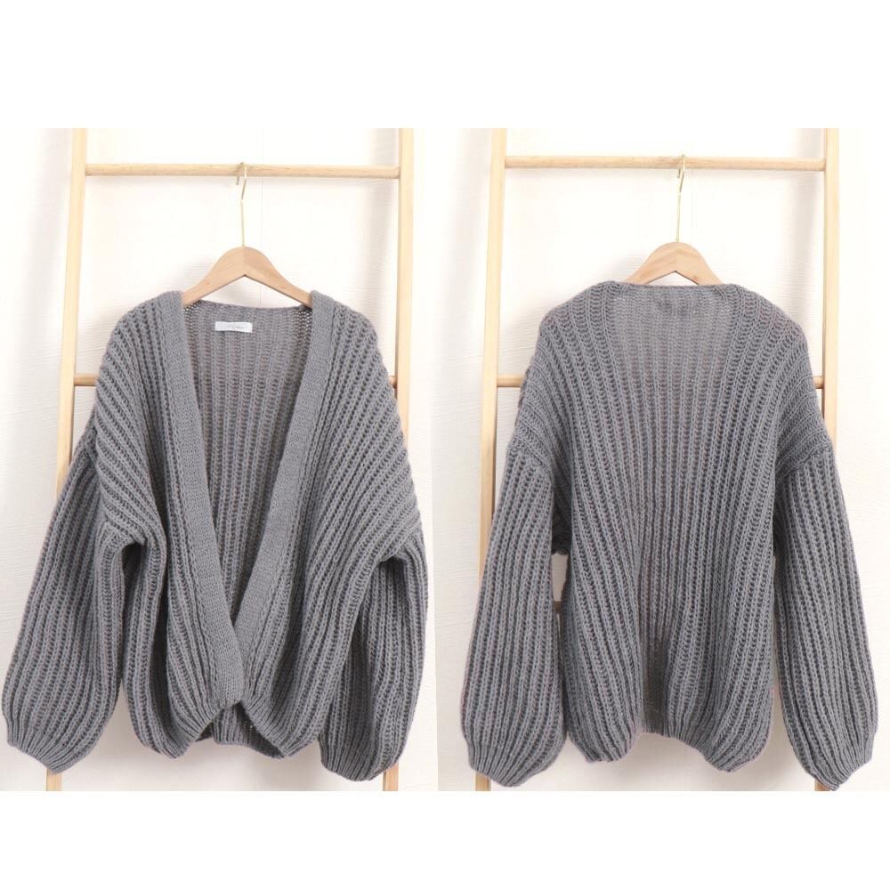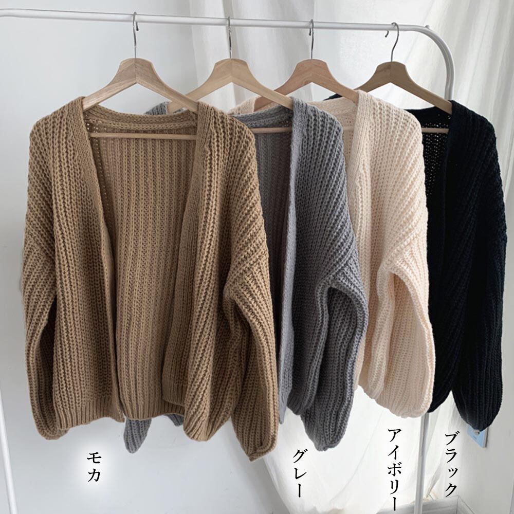 カーディガン 韓国風 ゆるニットトップス 体型カバー ボリューム袖 長袖 ニットアウター 羽織り 春秋服 大人カジュアル