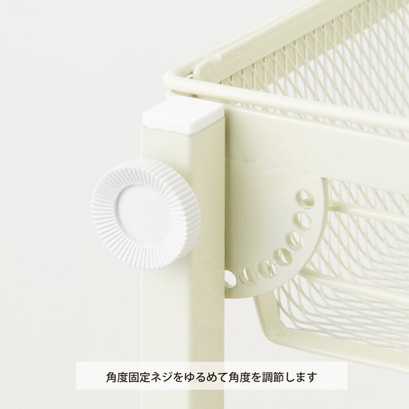 収納力のあるカゴ3段、傾斜をつけると下段の物も入れやすく取り出しやすい!