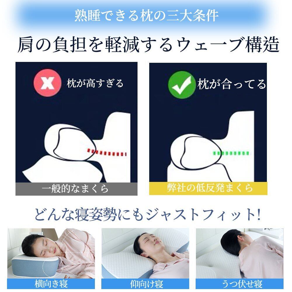 人気販売中!肩 首 痛み 横向き寝 低い 快眠枕 睡眠枕 まくら 頭痛 解消 頚椎安定型 いびき