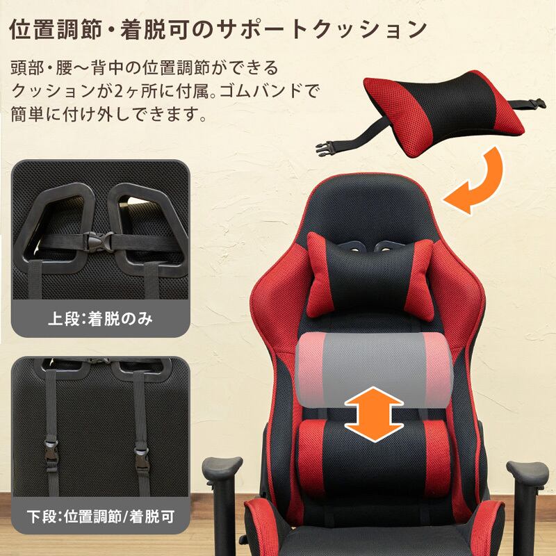 首を支えるクッションと背当てや腰当てに使えるクッションが合わせて2個付属します