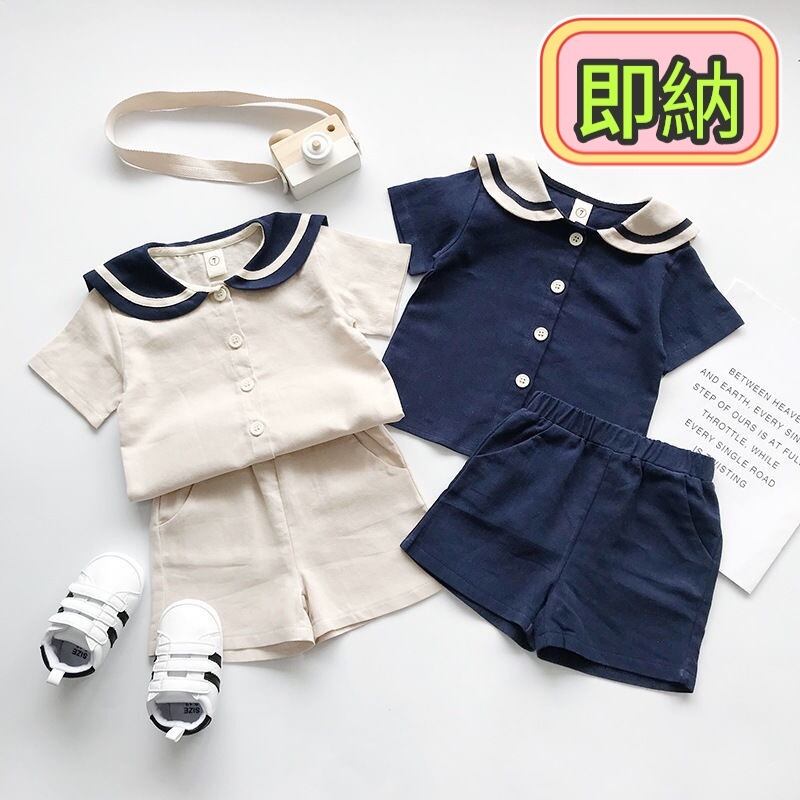 可愛いセーラー風のキッズセットアップになります、 パンツの両側にポケットがございます。
