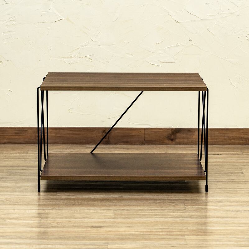 スリムなスチールフレームとヴィンテージテイストの木目柄天板を組み合わせたおしゃれなコーヒーテーブルです